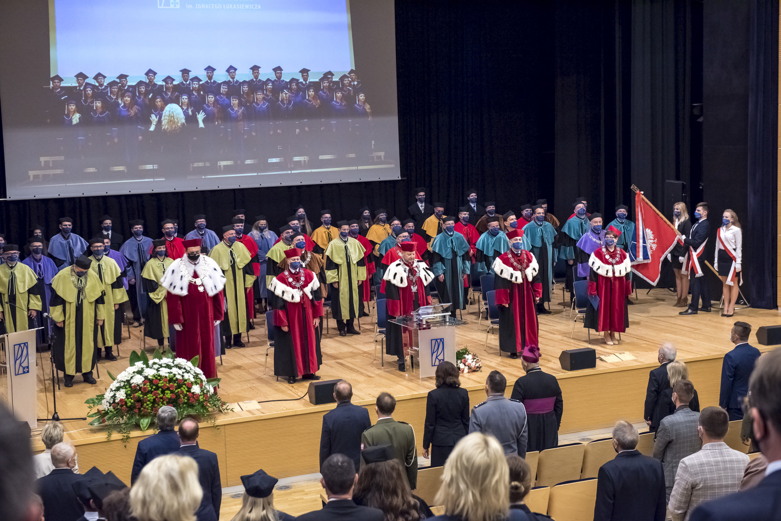 Ze względu na sytuację epidemiczną uroczystość inaugurująca jubileuszowy 70. rok akademicki na naszej uczelni odbyła się w warunkach zaostrzonego reżimu sanitarnego z zachowaniem wszelkich środków ostrożności. Pracownicy, studenci i sympatycy naszej uczelni mogli w niej uczestniczyć w relacji na żywo transmitowanej na kanale YouTube, uczelnianym Facebooku i na antenie Akademickiego Radia i Telewizji Centrum.